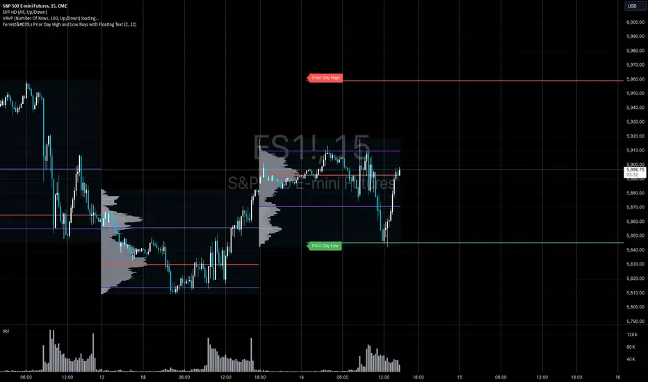 This custom TradingView indicator projects rays from the prior day's high and low prices, helping you visualize key levels of support and resistance from the previous trading day. The rays extend to the right, continuing from the prior day's high and low throughout the current trading day.