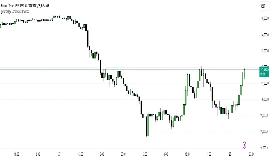 Transform your TradingView charts with Candlestick Themes, an indicator that customizes candlestick colors using a variety of stunning themes. Whether you’re seeking improved clarity, enhanced personalization, or a fresh visual appeal, this indicator has something for everyone.