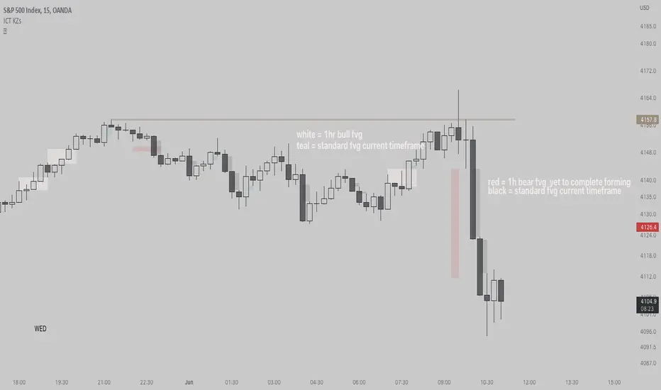 This indicator finds fair value gaps which are inefficiencies in price delivery. Gaps can be used for entry or even bias.
