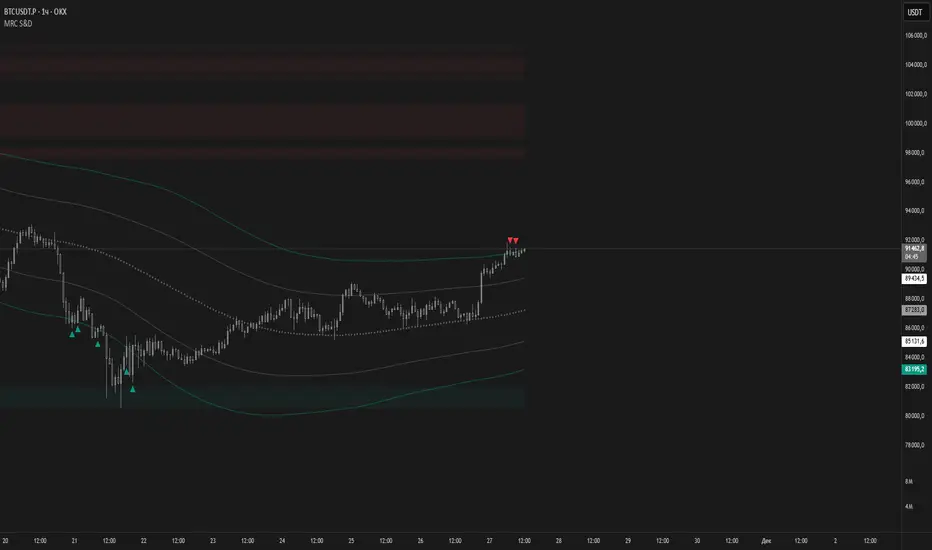 This is a ready-made "all-in-one" trading strategy. You get the trend (SSMA), volatility (MRC), and liquidity levels (S&D) in one compact script. It is perfect for scalping and day trading on any asset (Crypto, Forex, Stocks).