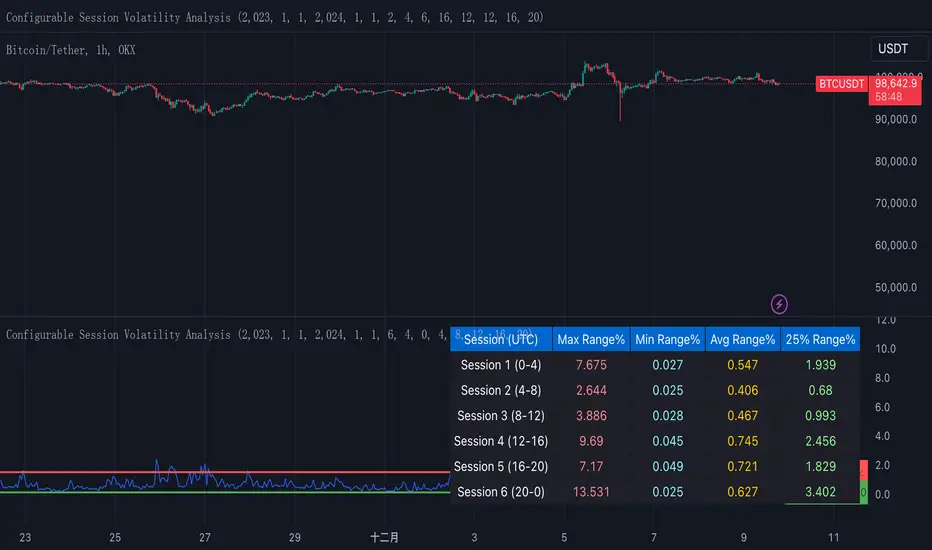 This indicator analyzes price volatility across different trading sessions throughout the day. Here are its key features: