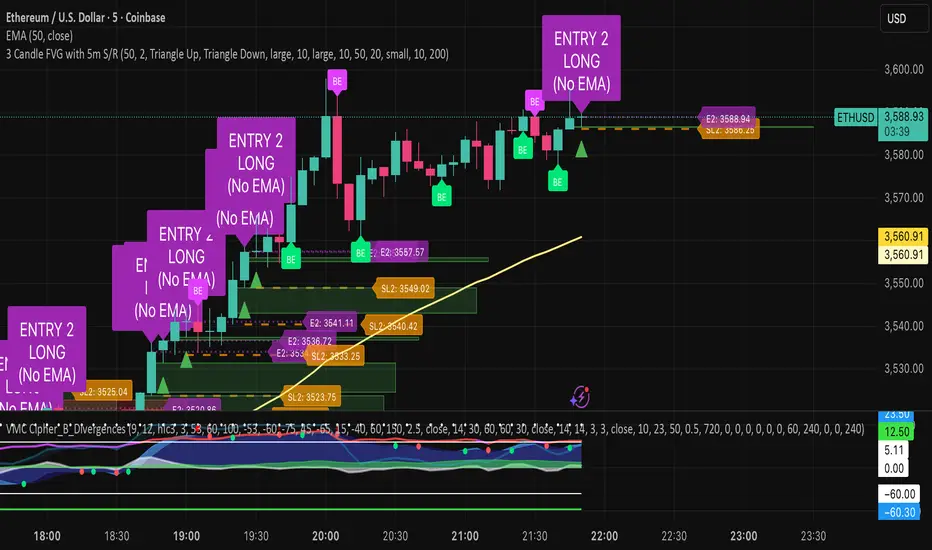 FVG indicated in between any candles, whilst passing and close over 50EMA.