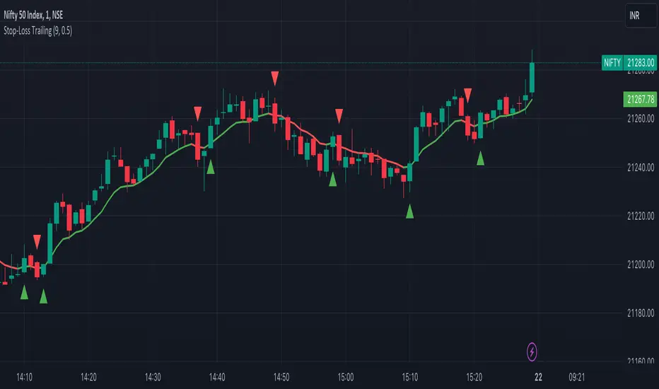 EMA Trend Indicator: The 9-period EMA serves as a momentum indicator, with the script adjusting the trailing stop-loss accordingly — above the EMA for short positions and below for long positions.