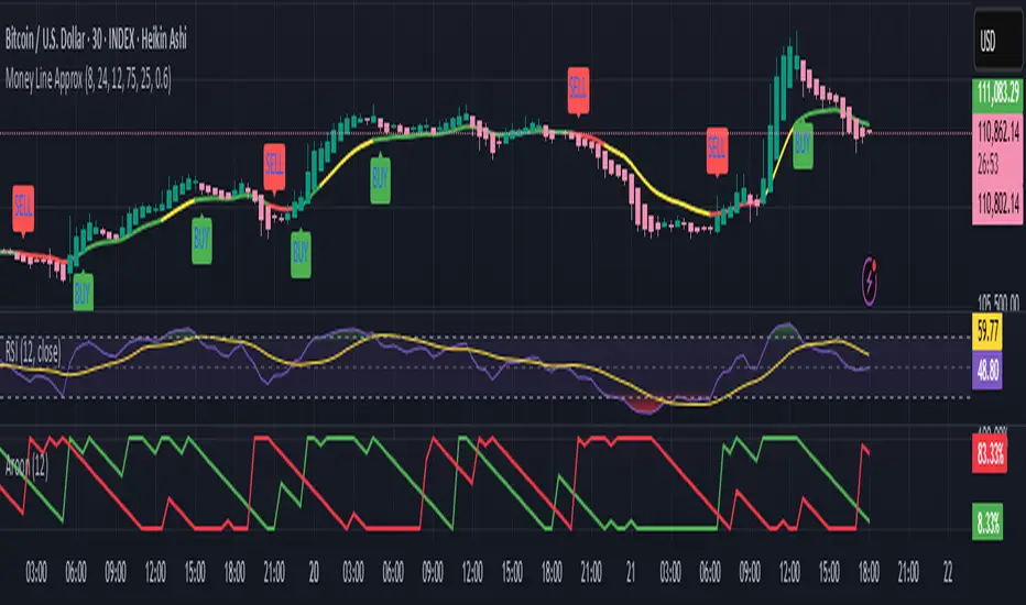 Bullish Setup: Green line + buy signal = Potential entry (e.g., buy on pullback to the line). Expect upward momentum if RSI stays below 75.