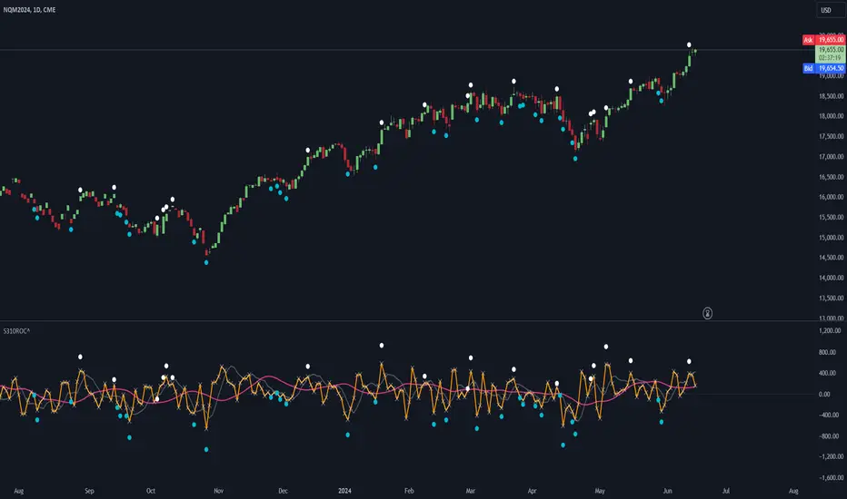 - ROC Dots: A great feature based on the oscillator's readings. Dots are displayed directly on the oscillator or the price chart to provide visual momentum cues: