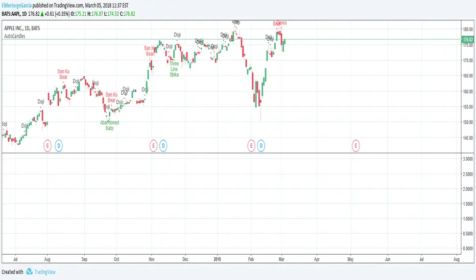 Hi everyone!, this Script is the first in my series of candlesticks indicators. Currently it supports only a few, but it´s quite strict about them, contrary to most scripts I do thorough calculations to avoid false signals, if you would like to soften the indicators so it generates more signals feel free to ask.