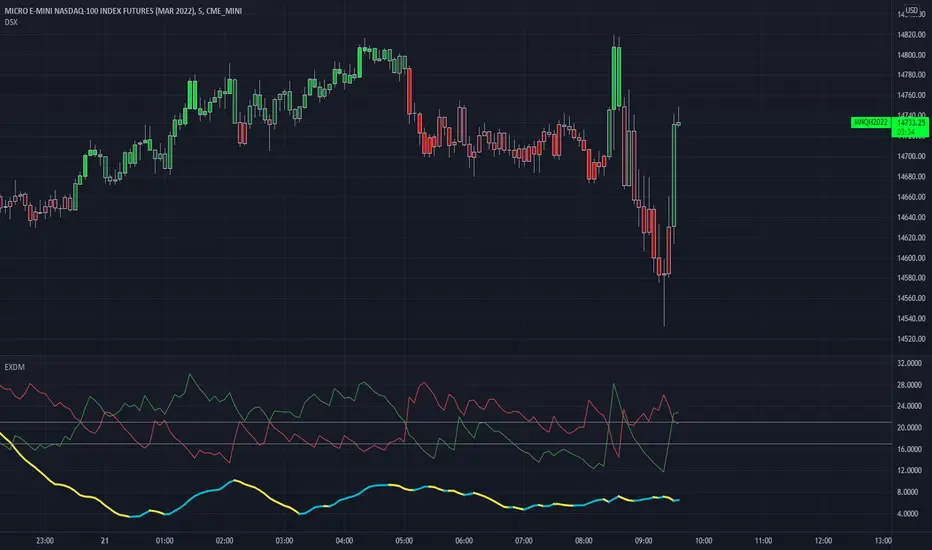 -When the DMI Div/Conv is yellow it means trend is slowing down and aqua means it is picking up