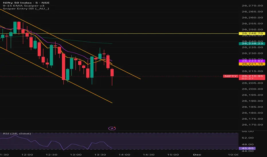 This indicator combines EMA 9, EMA 15, and VWAP to identify trend direction and intraday strength. EMA 9 and EMA 15 show short-term momentum and crossover signals, while VWAP acts as an institutional reference point for fair value. Together, they help traders spot trend continuation, pullbacks, and high-quality entry zones during intraday sessions.