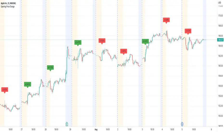 The label with the change value is always placed above the first opens regular market bar. If the change is positive, the label is draw with a green background, is the change is negative you will have a red background.