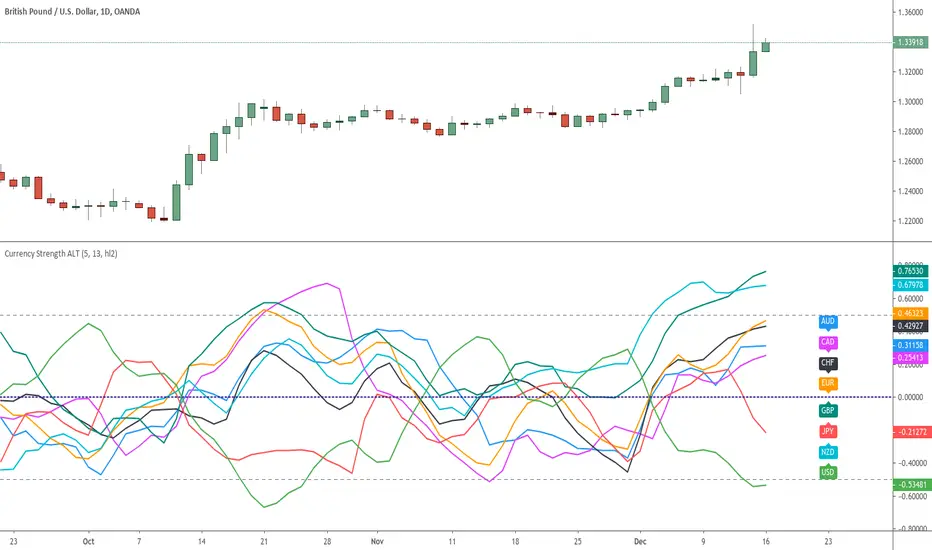 ***WARNING***The TradingView Currency Indices do tend to have gaps between candles especially on the low volume currencies like NZD and AUD, so strength chart can also jump around. I suggest using the indicator with higher TF (4H+) charts.