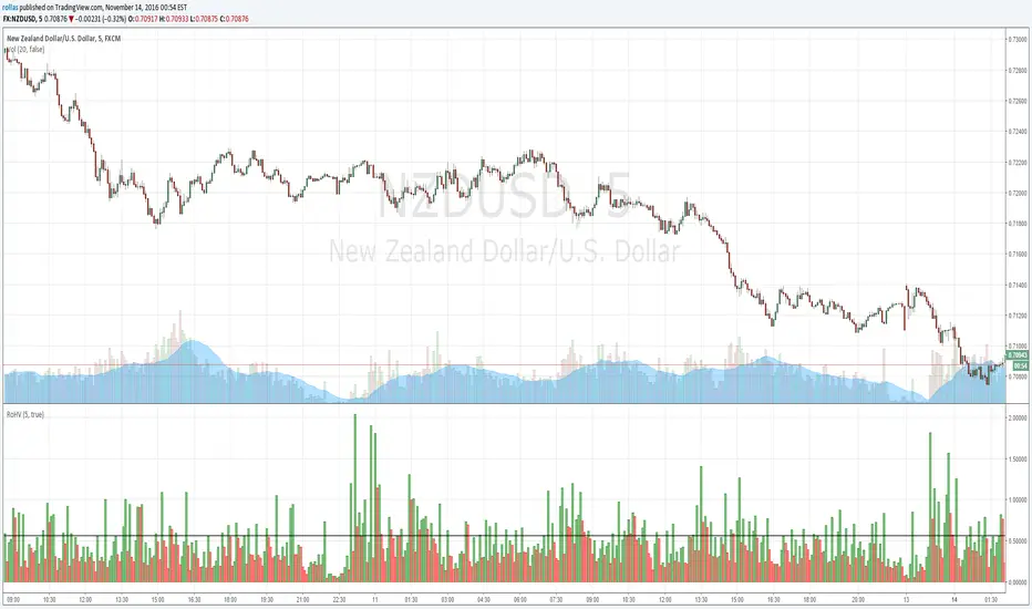 Works only on Forex pairs. See the inside bar volatility. Use precision to get data from lower time frames. Be aware that script initialization will be slower with the precision going higher. Added an option to show average volatility for long term as forex market transactions grow rapidly, suppressing all other markets.