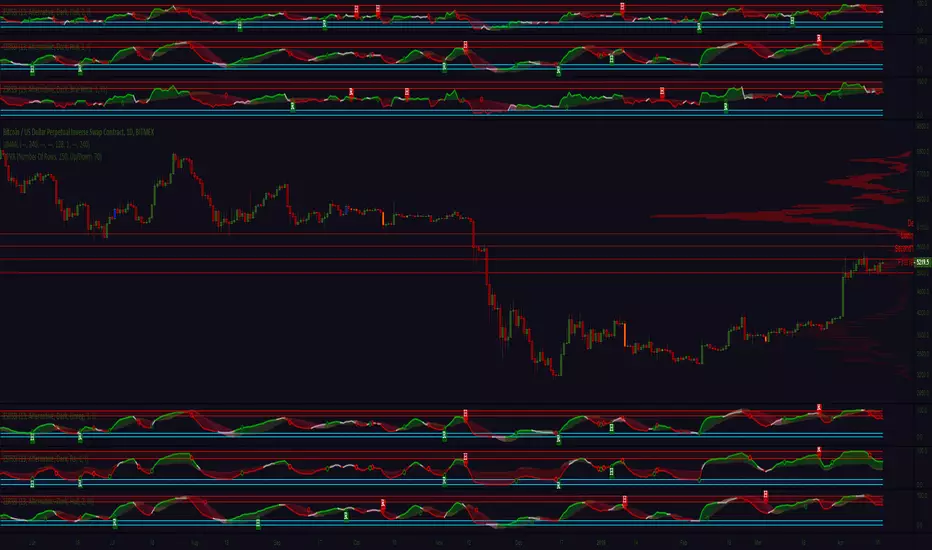 Main signals for current modes variate from self explanatory oscillators color change while moving out of extreme condition zone (overbought/oversold) to a brownish tint forming on impulse edges and representing S/R