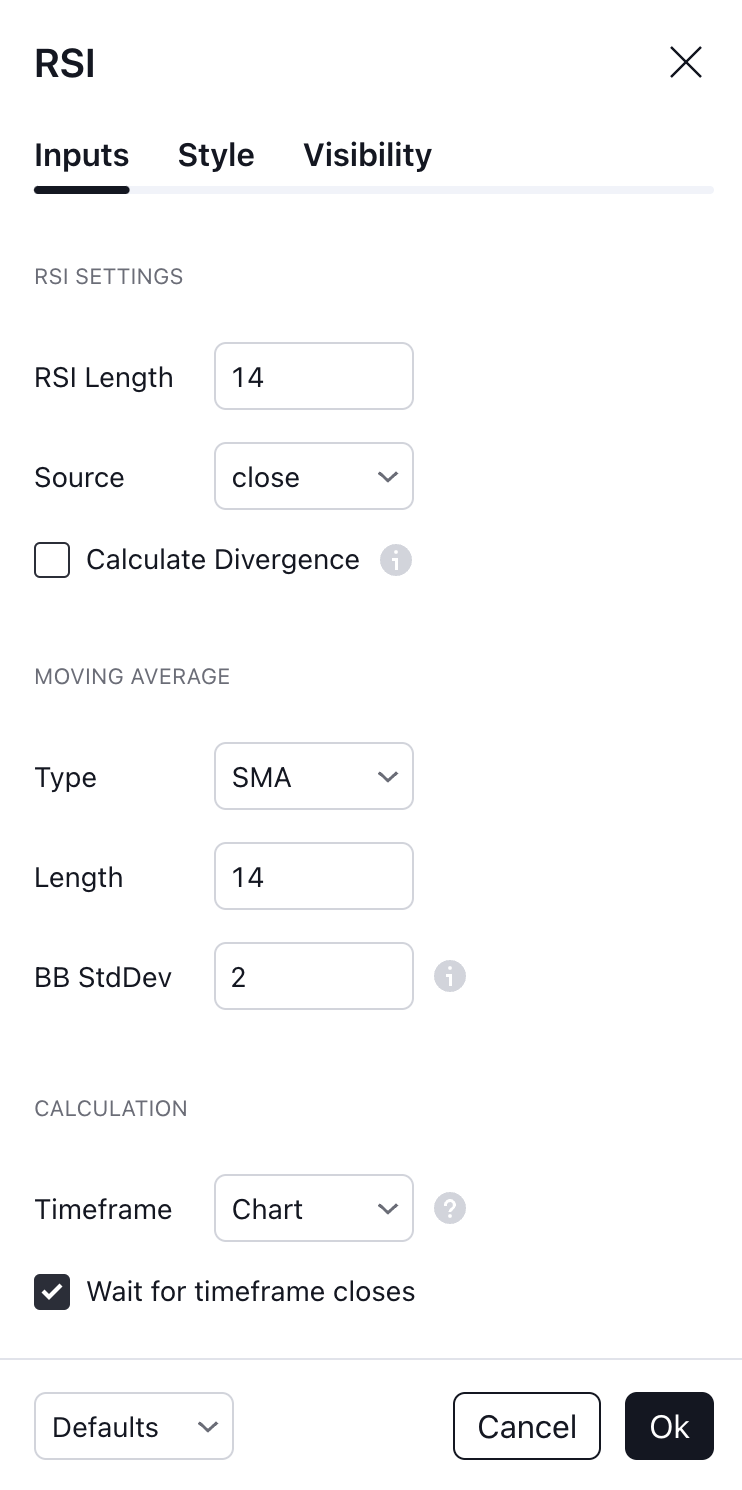 Periode waktu yang akan digunakan dalam menghitung RSI. 14 hari adalah bawaannya.
