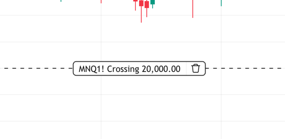Peringatan membantu Anda tetap mengikuti perkembangan peristiwa pasar utama dengan mengirimkan notifikasi dengan tepat waktu. Peringatan bisa sangat sederhana, misalnya, melacak kapan Bitcoin mencapai harga tertentu. Atau yang lebih canggih — seperti yang berbasis indikator dan strategi yang melibatkan berbagai perhitungan. Dan semua opsi ini tersedia di Superchart.