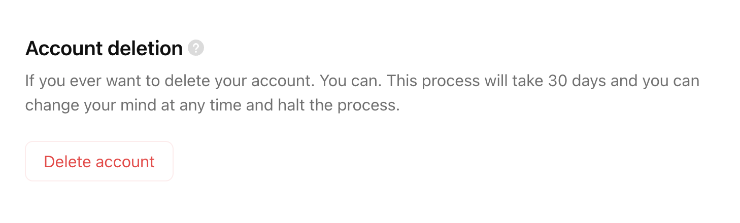 Akun anda akan dihapus setelah 30 hari. Selama waktu ini, anda dapat menghentikan proses penghapusan kapan saja dan terus menggunakan TradingView.