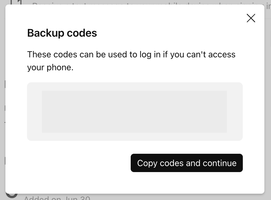 ! Penting: Simpan kode cadangan anda dan simpan di tempat yang aman. Itulah satu-satunya cara untuk mendapatkan kembali akses ke akun anda jika anda kehilangan kredensial login atau tidak dapat menggunakan perangkat autentikasi dua faktor (2FA).