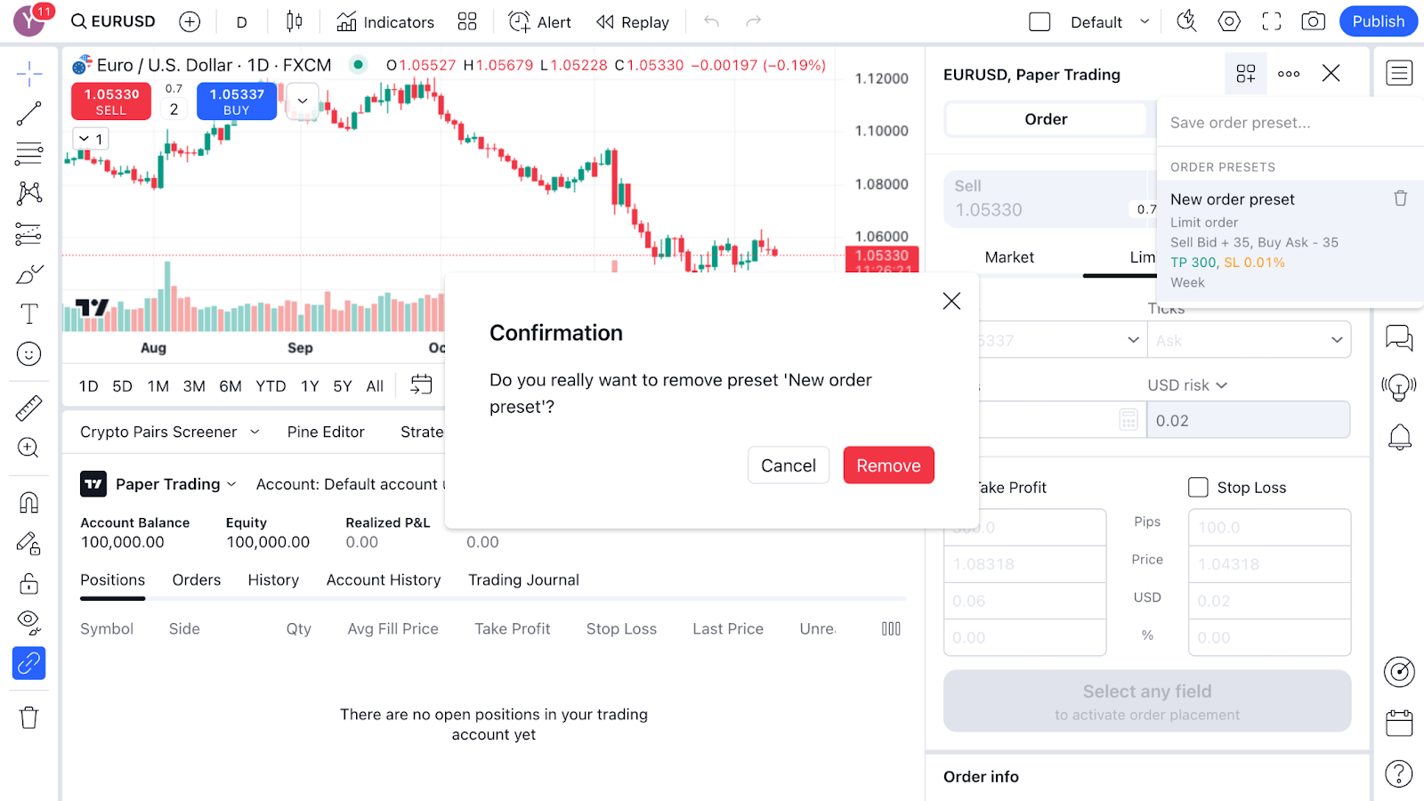 Bagaimana cara menghapus preset yang sudah dibuat?Preset dapat dihapus melalui menu preset di Jendela Order dengan mengklik tombol Hapus.Lebih lamaLebih lamaBagaimana cara mengedit preset yang telah dibuat?BerikutnyaBerikutnyaOrder pasarLuncurkan Superchart