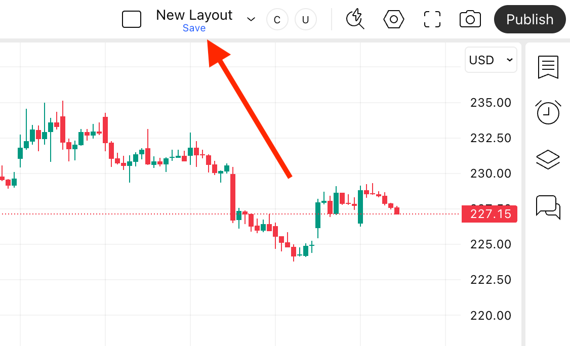 Jika layout memiliki perubahan yang belum disimpan, tanda "Simpan" berwarna biru akan muncul di bawah nama layout. Jika Anda melihat pesan ini, simpan layout Anda sebelum menutup halaman agar perubahan terbaru tidak hilang.