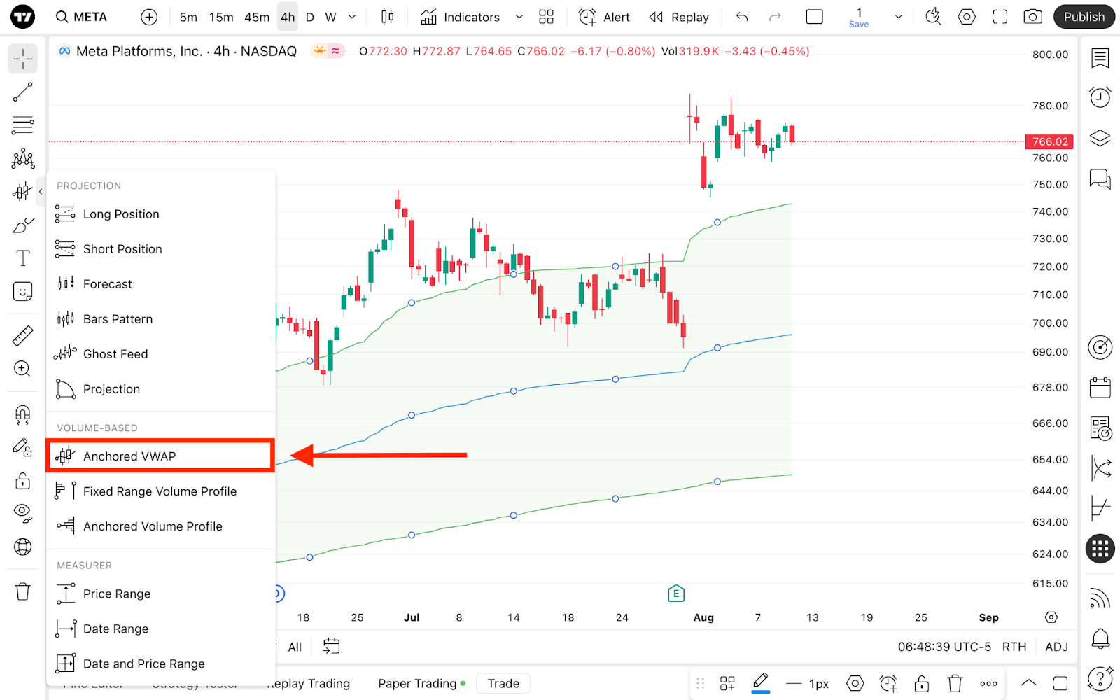 Anda dapat menemukan VWAP Terjangkar di "Peralatan proyeksi dan pengukuran" di toolbar sebelah kiri.